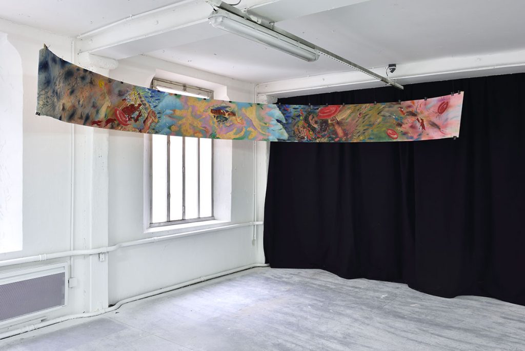Emplie d’un humour farouche et d’une gaieté vénéneuse, son œuvre fait hoqueter le bon goût, brandissant sur des papiers monumentaux des pastels aux allures d’étendards de nations grotesques où les animaux naïfs côtoient les silhouettes graves, où les femmes sans membres croisent des hommes sans tête…