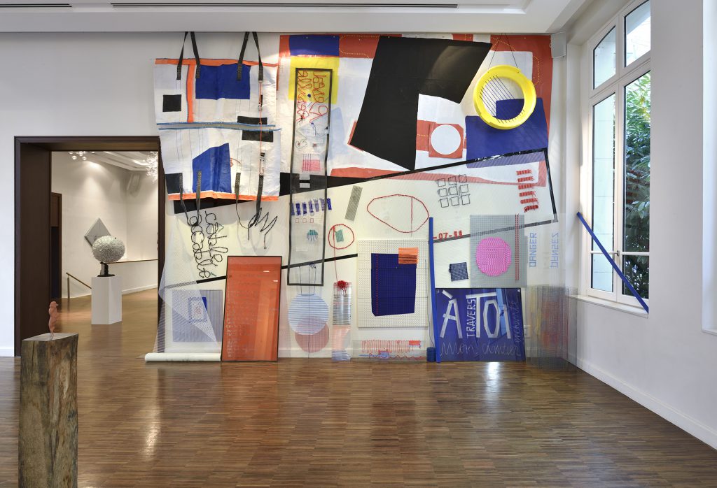 Le fracas fascinant des morceaux de pierre, l’élégance d’un grillage d’entrepôt, la souplesse et la grâce d’un tuyau retors, la courbure extravagante d’une gaine électrique, l’envol des rouleaux de scotch de masquage, la danse excentrique des fers à béton sur la mélodie ouverte des câbles éclectiques rouges, verts, bleus : Alice Louradour trempe ses mains dans l’univers du chantier pour le projeter dans l’espace de l’exposition et le faire chalouper.