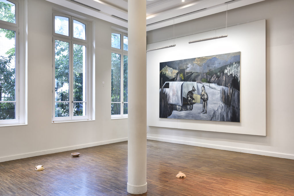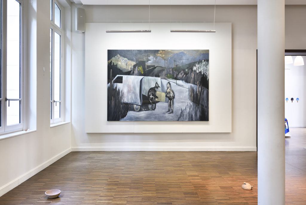Ludovic Salmon peint des sociétés de services, des salariés en open space, des postiers perdus en campagne, des machines obscures, des livreurs de sushis… Il représente des sujets sociaux en oscillant entre un registre tragique, fantastique et grotesque. Dans la plupart de ses peintures, l’humain apparaît en prise directe avec un monde contemporain qui semble se déliter. La peinture est pour lui une zone intermédiaire, entre l’image et la matière, à déchiffrer et à interpréter, qui possède une force comique, onirique et critique.