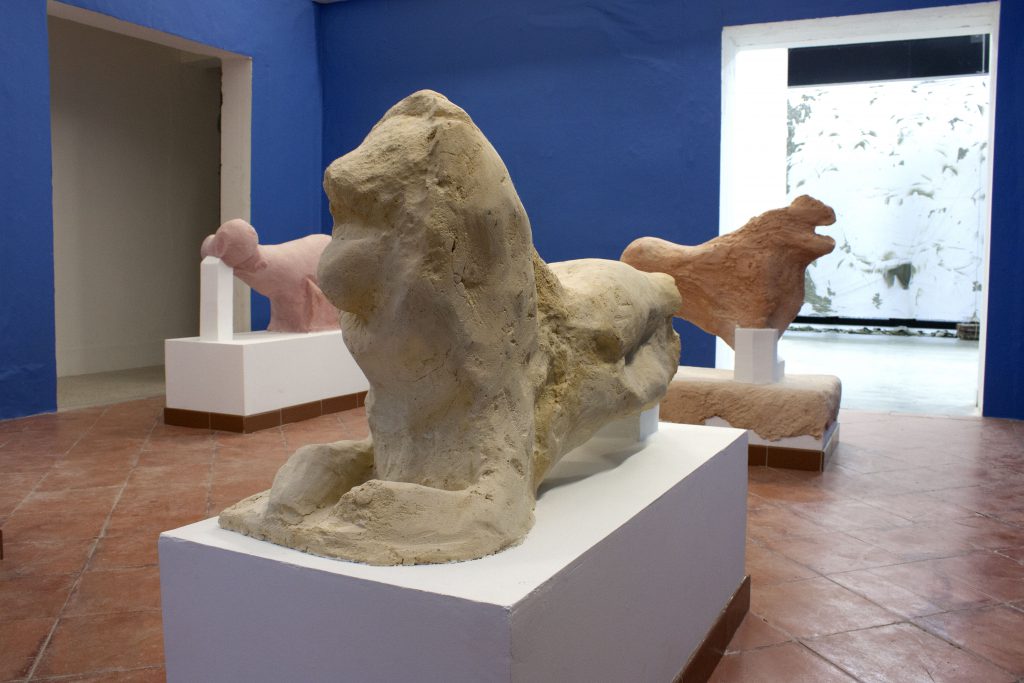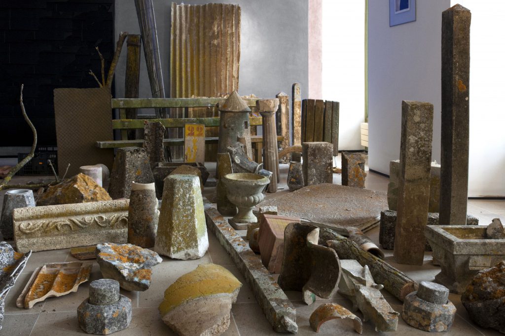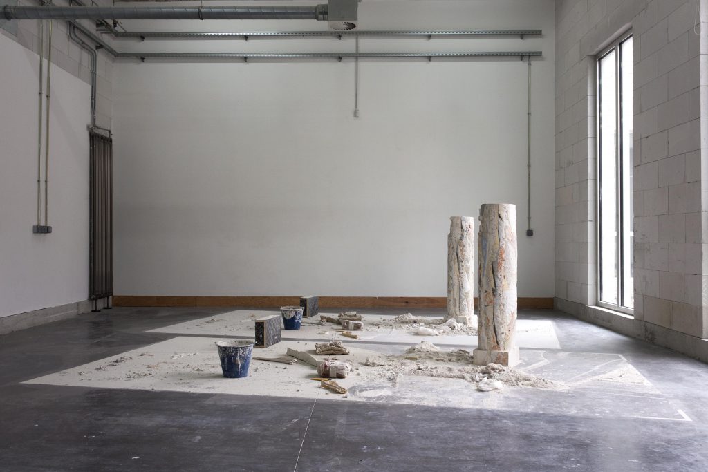 Dans le cadre d’une série d’ensembles intitulée L’autre (2017), Linda Sanchez présente deux espaces jumeaux, au sein desquels trônent deux colonnes marbrées apparemment identiques, entourées des rebuts et des traces témoignant de leur fabrication. « Cette reproduction est moins celle de l’objet que celle d’une partition de gestes et de l’espace-temps dans lequel tout cela se construit », souligne la jeune femme. Cette dernière s’est, d’abord, filmée en train de réaliser la première sculpture. Puis elle a projeté au sol sa propre image, l’habitant afin de répéter, geste par geste, la série d’actions aboutissant — théoriquement — au même résultat. Sans compter les infimes variations dues à l’irréductible imprécision de sa main, à la liquidité d’un plâtre, à la trajectoire d’une chute… Alors que, selon Constantin Brancusi, « l’œuvre d’art doit être comme un crime parfait », le travail de la plasticienne sonne telle la reconstitution de la scène du crime, loin d’un exercice de composition formelle ou d’agencement d’objets.