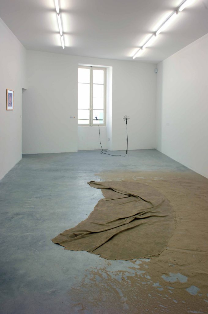La jeune femme a par ailleurs édité, face aux textes de l’écrivain Philippe Vasset, une série de schémas (14628.jpg, 2012), trame d’opérations graphiques et géométriques dont la succession génère ses propres règles, finissant par ne décrire que sa propre logique de construction. Le lacet (2016) s’apparente à un drap de plâtre se dressant dans l’espace, qui se révèle être le moulage d’une faille ouverte dans un monumental cube argileux, fendue a l’aide d’une corde.
