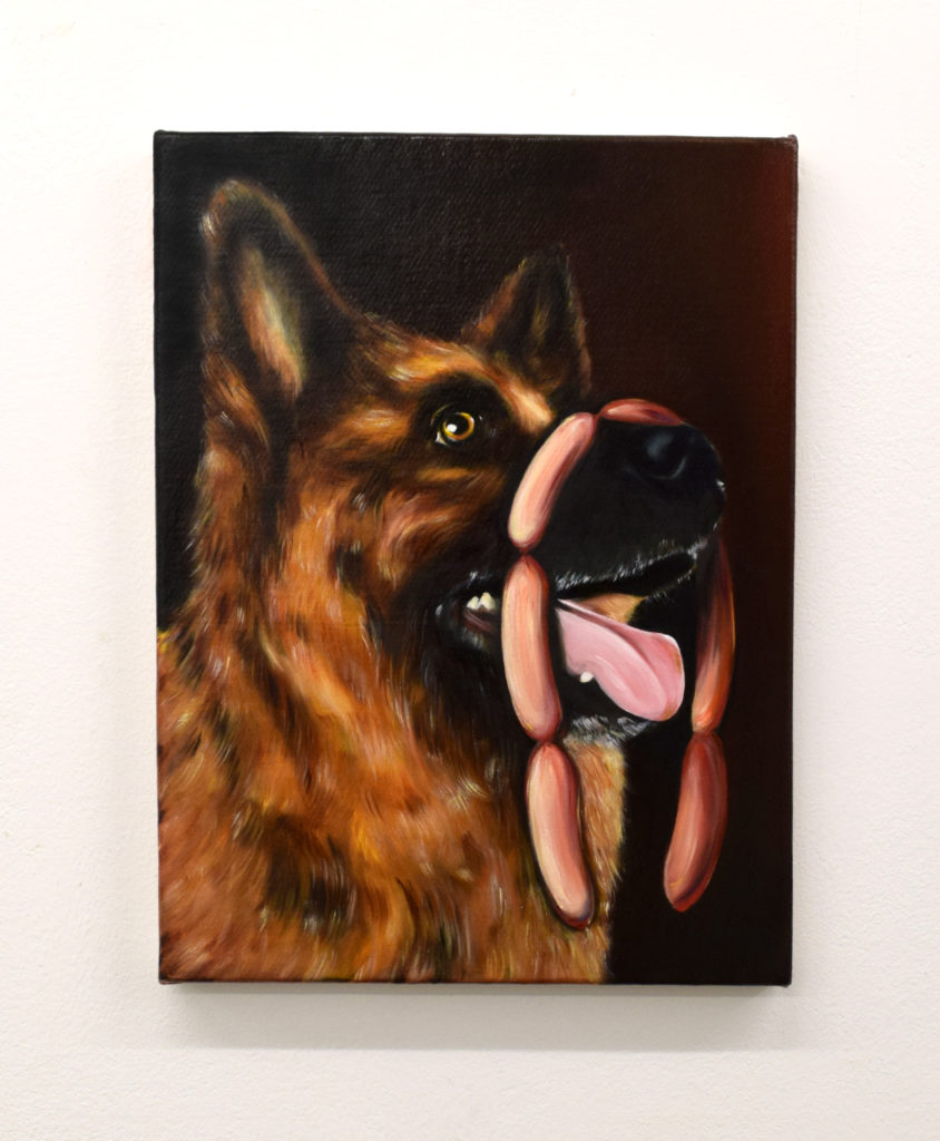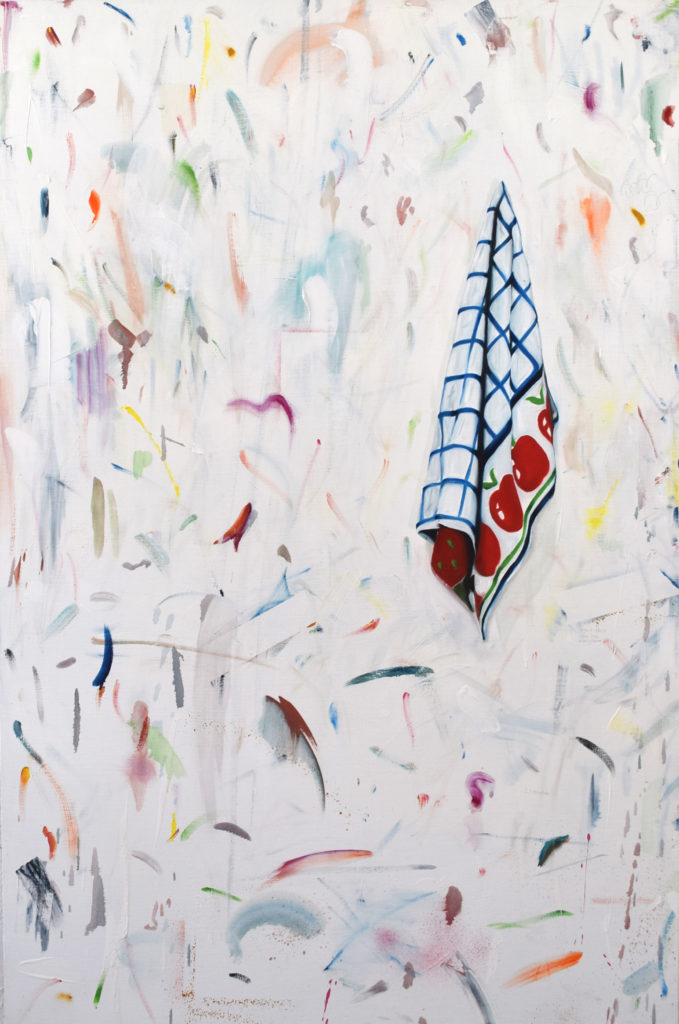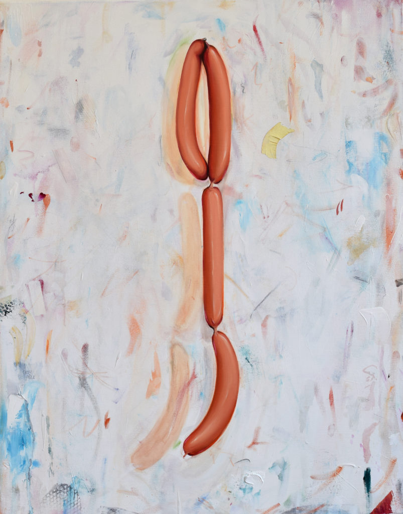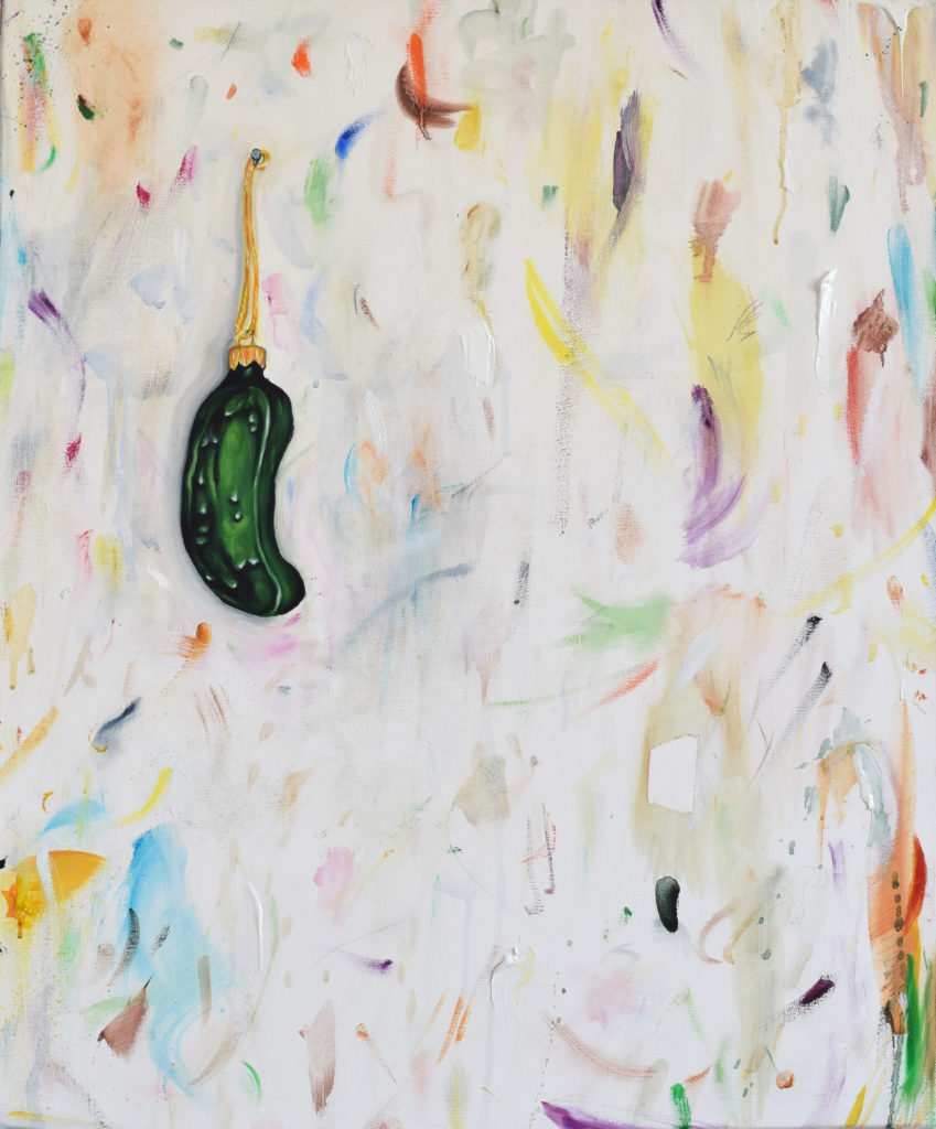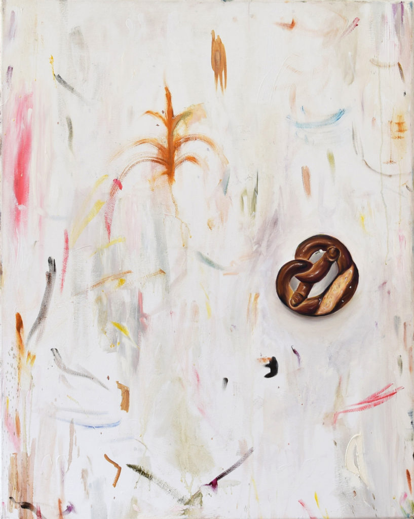Espiègle, Raphaël-Bachir Osman joue avec l’espace d’exposition et l’espace pictural. Il s’amuse avec les sujets et les codes de la peinture en intégrant une certaine magie de l’ordinaire et du banal. Il voit ses œuvres comme des récréations sérieuses et extirpe des fragments, des détails de son quotidien, des rencontres avec des objets qui attirent son regard : un bretzel, une coquille Saint-Jacques, une boule de noël-cornichon,… Détournant des images provenant de différentes sources, il utilise pour ses compositions une matière à la fois épaisse et lisse afin de mélanger les écritures sur le support de la toile, à la limite du mauvais goût et de l’objet kitsch.
