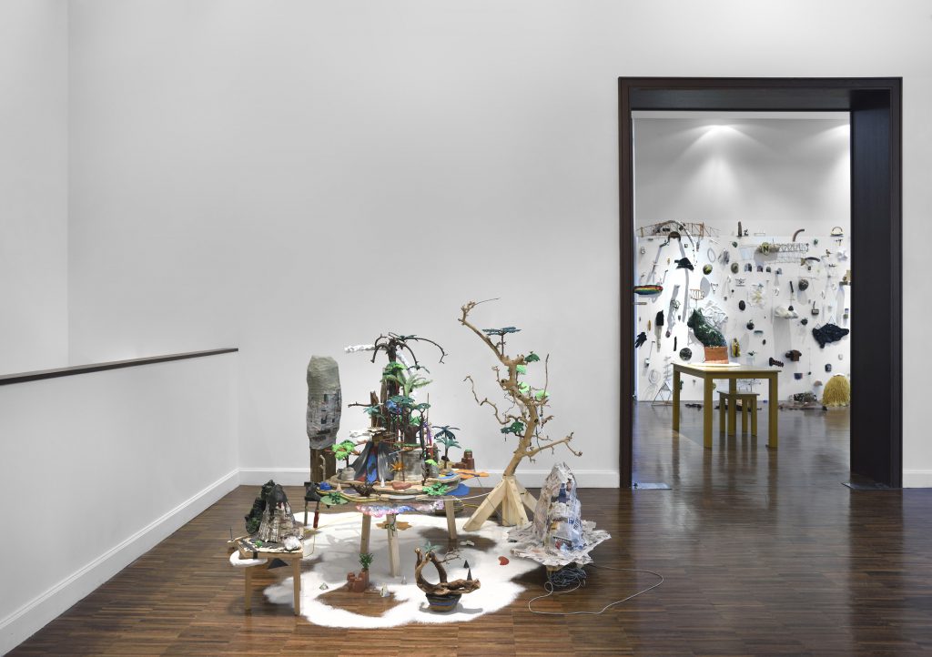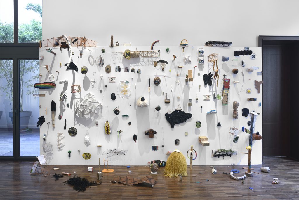 L’essentiel est qu’ils sont choisis en fonction d’une valeur esthétique, tout à fait personnelle à l’artiste. Puis il les arrange, à l’aide de colle et de tout ce qui peut faire tenir « tout ça » dans des sculptures joliment désinvoltes qui peuvent occuper des murs entiers sous forme de collections, ou s’ériger plutôt en autels, ou encore s’assembler comme des rébus.